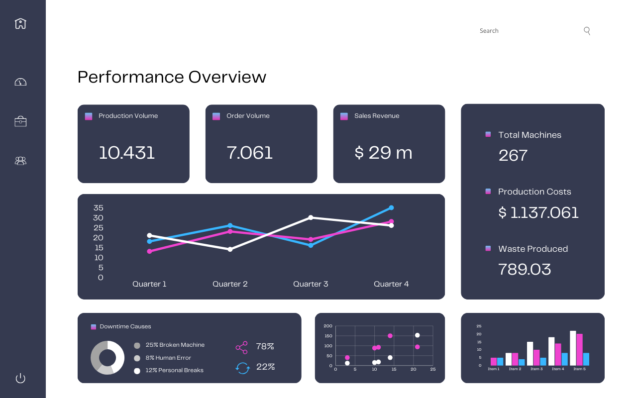 A single dashboard for leadership to monitor revenue, risks, and key growth drivers.